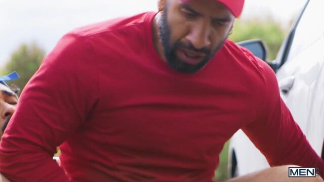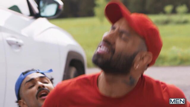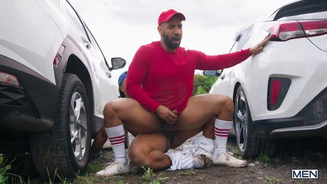 Mateo Zagal and Diego Silva fuck among the cars - Men