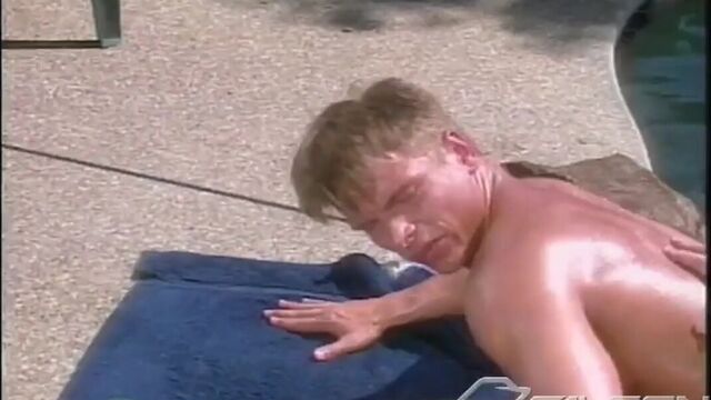 Gregor Yelson and Kevin Miles are alone at home, playing by the pool and soon playing with each other. Kevin takes Gregor's uncut prick in his mouth, nursing on it, nibbling the foreskin and fleshy meat. the two begin to 69, their mouths bouncing up and down each other's cocks like well-greased pistons. Gregor is happy to be with his rich American friend, having travelled miles to get here, and he shows his gratitude in the best way he knows, offering his hungry mouth and ass for Kevin to fill. He then fucks his friend's hole, grinding his tool high up Kevin's crack until they both finally shoot their wads, ending in a deep embrace.