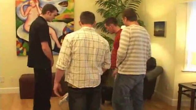 Samuel was walking down a country road recently, when he noticed a group of hot guys standing around in the living room. Being the horny guy that he is, he creeped up to one of the homes windows and peered inside. The guys were watching porn!It didn't take long before Samuel was noticed inside by the group of guys. They also were horny, so they pulled out their cocks and made Samuel service them until they all had cum onto his face. Enjoy!