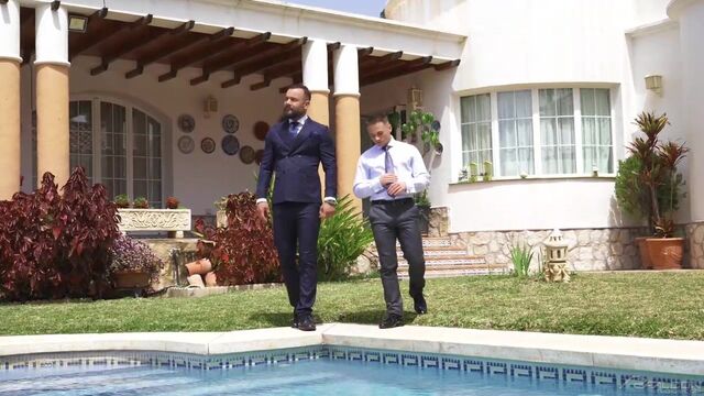 Sir Peter's feelings toward all-star playboy Jake Mathews have the hung tech magnate dialing Paddy O'Brian, owner of The Nines, to reclassify his 'business arrangement' with the thick twunk. Overcome by love and lust, the wealthy executive can't resist the feeling of Jake's mouth wrapped around his oversized cock or the raw sensation of his big uncut dick disappearing inside of Jake's tight asshole. Sir Peter's passion for Jake grows even stronger as the two rip off their suits and fuck bareback outdoors until a jockstrap-clad Jake is rubbing every drop of Sir Peter's latest load into his smooth supple skin.Â