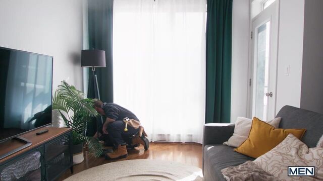 Femboy Troy River is all dolled up when bearded hunk OnlyMatt arrives to install the internet. Troy directs Matt where to jack in, and watches his ass as he bends over. Once the install is done, Troy offers Matt some refreshment, and as Matt's bent over the fridge, he rips open his coveralls and fucks his hole! Matt's excited to suck the femboy and then ride him on the couch while Troy jacks his cock till he cums, then he licks the femboy's balls till Troy shoots his load.