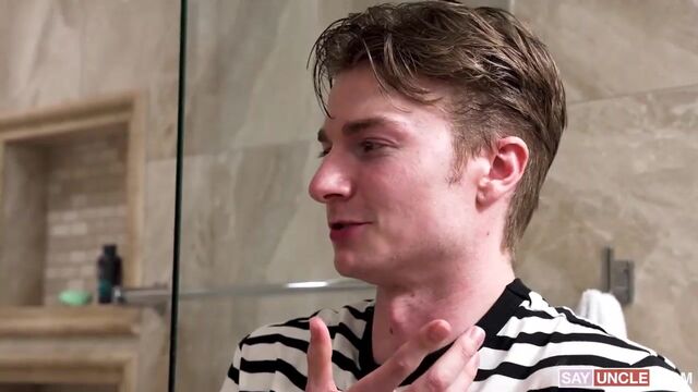 Alex is taking a nice hot shower all by himself. He softly rubs his ripped body with soap as he enjoys a private moment away from his family. Unbeknownst to him, Gage, his young and horny stepson, is actually at the bathroom door, gently stroking his dick while he observes his stepdad’s shredded body. Suddenly, Alex realizes he is not alone and tells Gage to show himself. The boy is embarrassed and tries to lie his way out of the situation, but Alex has different plans in mind. He tells his stepson to undress and join him in the shower. Gage is troubled by his stepdad’s proposal, as he is afraid that his mom might walk into the two of them in the shower, but Alex promises his stepson that this will be their little secret. Enticed, Gage gets naked, enters the shower and kisses Alex passionately while grabbing his dick. He wants it so bad and he won’t rest until he feels his stepdaddy’s cock crawling deep inside his tight little hole.
