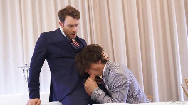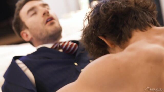 Boy-next-door Seth Peterson has always fantasized of becoming one of The Nines' premier playboys, and now, head honcho Paddy O'Brian is recruiting him to satisfy longtime client Charlie Cherry. Eager to take Seth's virginity, Mr. Cherry has paid a premium price to stuff Seth's open mouth and untouched ass with his big, bushy dick. Seth, determined to earn his proper place with The Nines, gets pounded like a pro by the suited executive until Charlie is covering him in cum and Seth is blasting his own jizz across his muscular body.Â