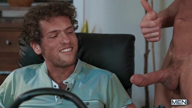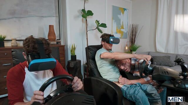Bunker's playing a VR racing game with his pal Troye when Troye's hot dad, Bruce Beckham, comes in to see who's winning. He gives Bunker a bit of a pep talk, then notices the college guy's cock is peeking out of his jeans! Bruce is happy to give Bunker a hand, and the guys suck each other, then Bunker rides the daddy... until Troye catches them. Once he runs out of the room, the horny hunks are free to keep fucking, and Bruce pounds Bunker on the couch, then drills him from behind. Bunker rides the top till he cums and gets his hole bred!