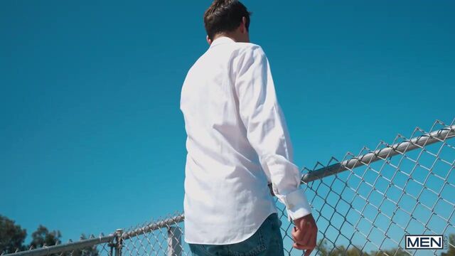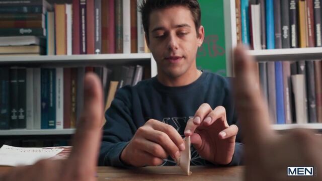 Ever wanted to follow twink Joey Mills for a day? His morning starts with a rude awakening from Hayden Harding who gets him out of bed with a water gun! The guys playfully roughhouse in the locker room and take a break from studying in the library for a game. Outside on the bleachers, Joey reclines in the sun with a book. And of course, any day with a pornstar wouldn't be complete without sex! Hayden takes his boner out as the guys chill on the couch, and Joey sucks him, getting naked for Hayden to play with his hole, then fuck him doggystyle. Joey lies back to get fucked in missionary, and cums as he rides the hairy top, then hurries into position to take a facial, sucking out every last drop.