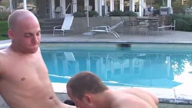 A couple of sunny days ago, Kenny and Scott were taking a dip in the hot tub before going out. Kenny wanted to feel more 'free', so he took off his swim trunks and let his balls hang. Scott noticed Kenny wasn't just letting them hang; he was also stroking his cock. This made Scott a bit horny so he joined Kenny in the underwater escapade.Some time went by when Scott got ballsy and dove on Kenny's dick, sucking it down like a vacuum. After getting blown for a while, Kenny thought it'd be a nice gesture to return the favor, so he did. Once the two studs moved from the tub and 69ed on the lawn, they both laid on their backs and shot cum all over the place.A good scene with a good ending.  Enjoy!