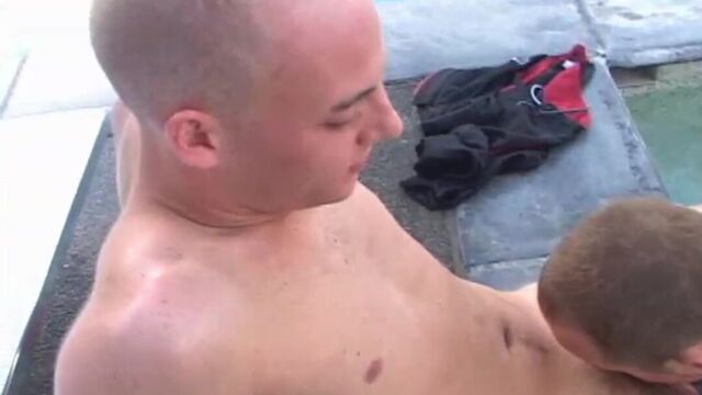 - Description: A couple of sunny days ago, Kenny and Scott were taking a dip in the hot tub before going out. Kenny wanted to feel more 'free', so he took off his swim trunks and let his balls hang. Scott noticed Kenny wasn't just letting them hang; he was also stroking his cock. This made Scott a bit horny so he joined Kenny in the underwater escapade.Some time went by when Scott got ballsy and dove on Kenny's dick, sucking it down like a vacuum. After getting blown for a while, Kenny thought it'd be a nice gesture to return the favor, so he did. Once the two studs moved from the tub and 69ed on the lawn, they both laid on their backs and shot cum all over the place.A good scene with a good ending. Enjoy!