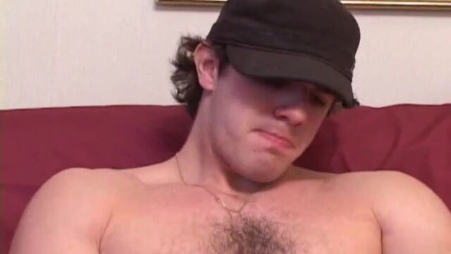 Mike Cooper wears a hat and cums on a couch - Stroke That Dick