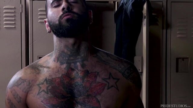 Mature/muscled hotties Hunter Vance and Rikk York fuck in the locker room - Men Over 30