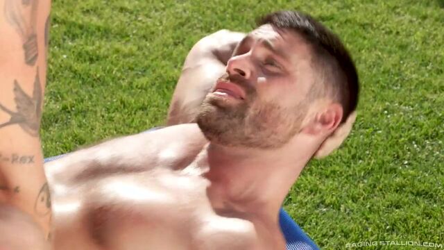 Chris Damned and Isaac X fucking in that yard - Raging Stallion
