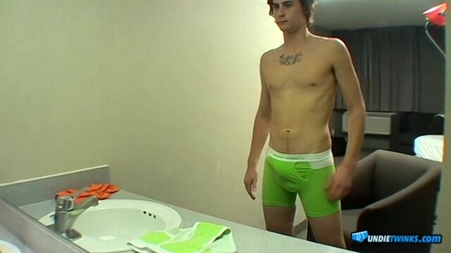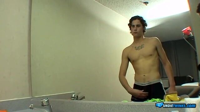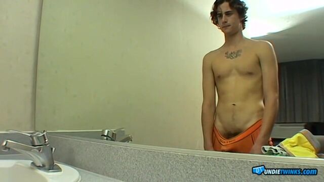 Joey turns himself on in front of the mirror while changing into different undies until he picks the pair he wants to shoot in... SO HOT! A MUST SEE CUM SHOT!