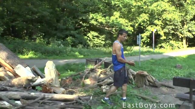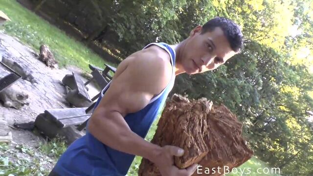 Muscle lover's fav Carlito Lucero will show off his baseball biceps lifting stumps in the woods, then show off what his cock can do while getting a handjob. Watch for that cum to explode, I bet it's on the ceiling! Clean up in isle 4 quick!