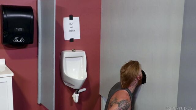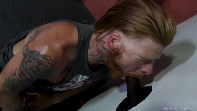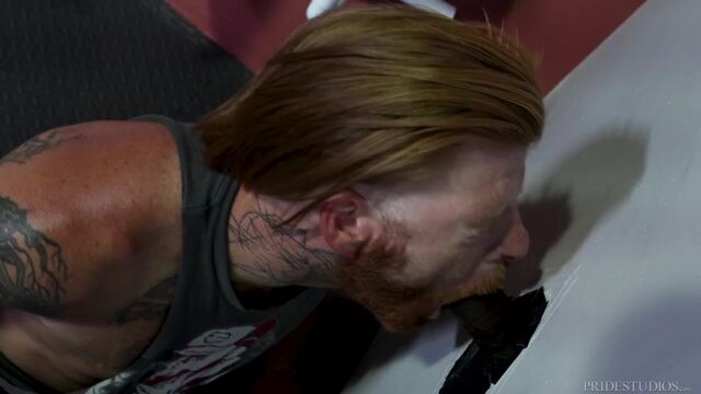 Aaron Trainer is waiting at his local gloryhole hoping someone will stop by. He strokes his big cock patiently waiting until Bennett Anthony shows up and begins sucking his bid dick. Aaron has no idea who is blowing him but he continues to fuck that mouth. Bennett gives Aaron an amazing BJ and than he puts his ass up to the gloryhole. Aaron sees a tight hole and pushes his cock inside of him and fucks him through the gloryhole. Aaron comes out of the stall and they start fucking again until he fucks the cum right out of Bennett. Once he sees that warm load Aaron too shoots his load.