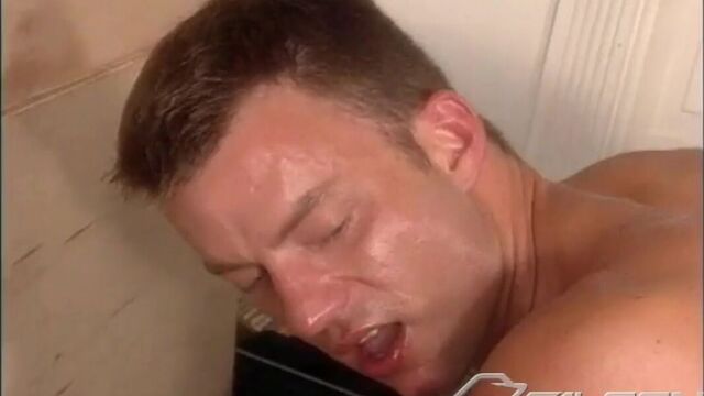Jackson Price, Leo Bramm & Sam Crockett. Jackson sucks Leo's and Sam's mantools, then lays back, exposing his hole for Leo to eat and Sam to plug. They slide greased fingers into Jackson's hole, then shove the handles of screwdrivers in. Jackson gets screwed, hammered, drilled and pounded hard.