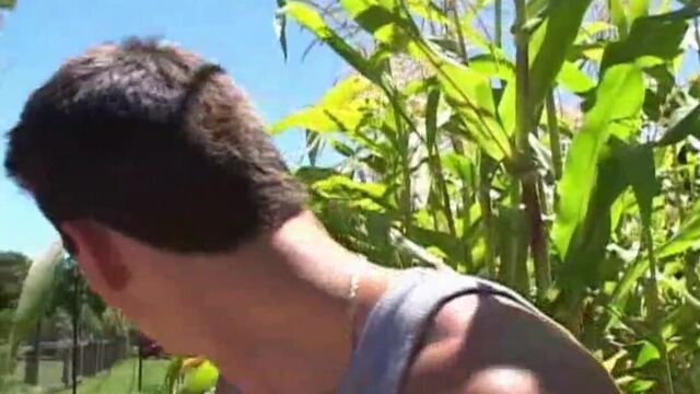 Jonny T fools around outside, strokes his cock inside - Nextdoor Male