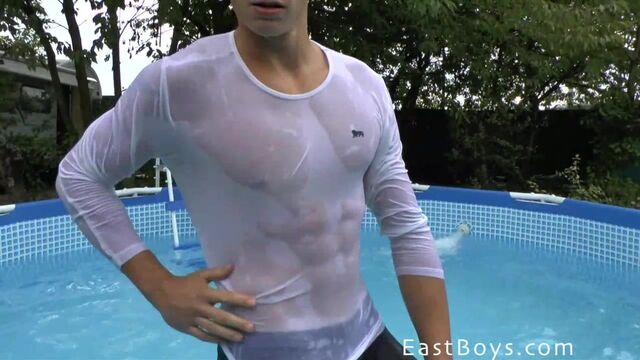 Who would nor want to see yet another muscle flexing worship video with Blake Orson? Great looking guy, with beautiful face and great hard muscular body, Blake will show off his muscles for you in a pool, with wet t-shirt, then with no t-shirt! Enjoy, this is next best thing to actually feeling his body, great video, now available in full HD!