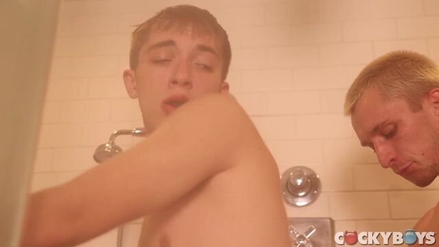 There's little room in the shower and bathroom for Jacob King, Theo Brady and their big dicks, but they find a way! Jacob is rock hard before his a pre-sex shower getting ready for Theo, whose solution is simple: shower together! Of course just after after kissing and sword play, Jacob is on his knees sucking Theo, whothen eats him out and fucks the moaning bottom from behind.Eventually Theo takes Jacob out of the shower to dry off, where they replicate their actions, except this time Theo takes Jacob across the bathroom counter and against it. Then after blowing Jacob, Theo power drills him atop the counter while stroking him until he explodes over Jacob, then keeps going until he fucks a load out of Jacob. Ah well, time for another shower! Enjoy, Jake Jaxson