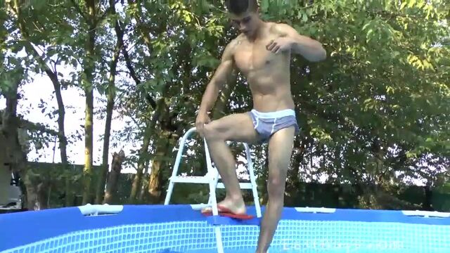 Rodrigo is all muscles and he knows it, he loves to show off his rock hard baseball biceps and triceps, and show off his hard muscular body in general. Treat for muscle lovers, this dude has great body and we are proud to bring you this pool video where you can see all in great detail! Enjoy!