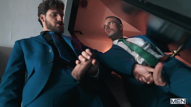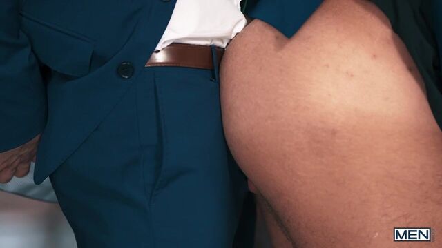 - Description: Mustached Apolo Adrii can't stop himself from admiring his coworker Samuel Hodecker's cock in the bathroom, till Samuel catches him looking and rubbing his bulge. No words are needed as Apolo goes into a stall and makes his invitation clear, answering the bearded man's knock with his hard, uncut dick out. The guys stroke and suck each other, then Apolo rims the bottom and penetrates him. The guys hide in the stall, frotting, when their boss comes in, then fuck on the floor. Apolo pounds Samuel against the wall, then fucks him on his back till he orgasms before pulling out and covering him with cum. Back to work!