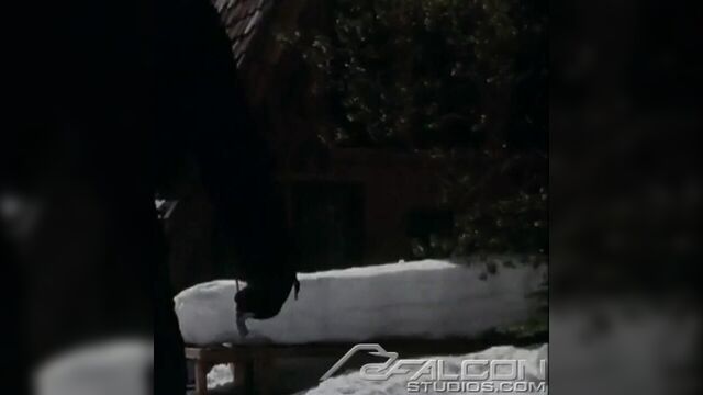 Pre-condom classic: Outside in the snow Jeff Turk watches Dick Fisk and Chad Benson embroiled in a blazing sexual adventure, raising the temperature inside their cozy cabin and in Jeff's pants.