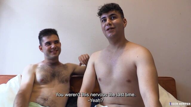 - Description: I woke up incredibly horny. It was supposed to be a really hot day so I decided to make things easier. Instead of walking around Prague looking for someone to fuck, I called these two dudes I met recently. They both needed money and agreed to visit me. We met in the afternoon, so I had enough time to prepare this threesome. The guys arrived a bit sweaty, so I let them shower each other first. Once they were nice and clean, I let them play with each other. I sit and watched them kissing and sucking. Then I positioned them on a table and checked their beautiful butts. It required a bit of acrobatics, but we were able to try some interesting positions. I fucked both their holes nicely while the guys were sucking each other. One of them was even able to take two cocks in his ass at the same time.