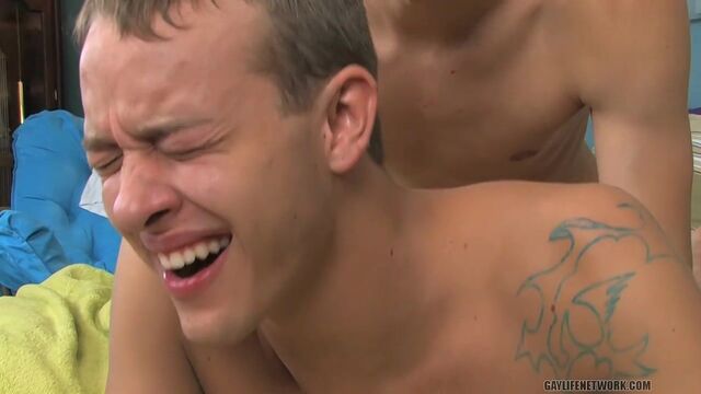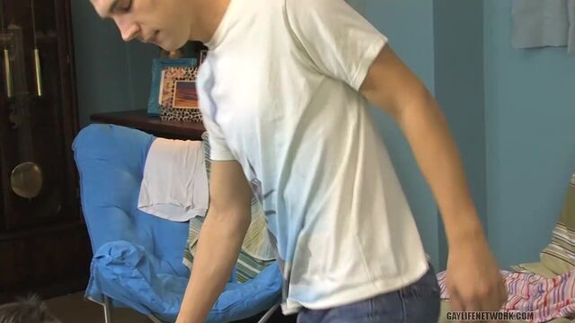 The cute boys, Patrick Kennedy and JT Wreck, are in the bedroom and one of them is on his stomach getting an erotic massage. The strong hands rubbing his back relax him and make his cock stir to life. From there the scene erupts into a sensual suck and screw fest. They are into the passionate pursuit of orgasm and that includes gay blowjobs and good doggy style sex. The cocks are big on these tight boys.