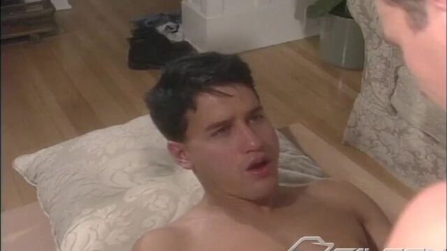 Proving he can deliver the goods, paperboy Zach Richards humps Colby Taylor while getting his asshole fingered. Zack peels Colby's jeans off, pulls the massive cock out and sucks it down his throat. He then pays homage to Colby's ass, eating it out. Zach then climbs aboard Colby's face and gets reamed, his hole twitching with excitement and aching for some plundering. So laying back on the couch, Zach spreads his legs wide apart and Colgy thrusts his hard cock inside. Zach flips around and Colby continues the ass-packing. Sitting side by side, the two jocks stroke themselves to orgasm.