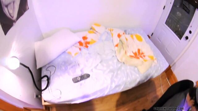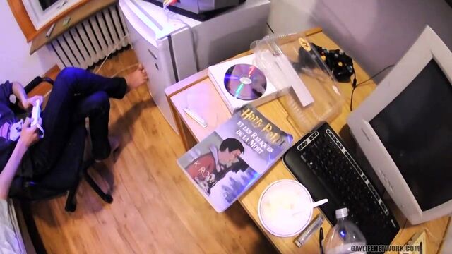 Kevin Carson shows us around the house of his ex-boyfriend, Brent Lockhart. He disturbs the super geeky ex who is playing his game console! The look on Brent's face when he gets disturbed by Kevin's tongue licking his neck is amazing, soon the games console is thrown to one side, as Kevin takes his ex-boyfriend into the lounge for a super hot fuck!