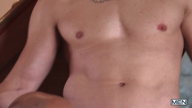 Pacifist Eliott (John Jai) is upset at the thought of two prisoners of war (Alexandro Cabrera and Jordan Fox) being held in his home for the night when two military men bring them to the doorstep, and that night he steals the keys and goes to set them free. In the tower, the prisoners are reminiscing about their women back home and decide that since this might be their last chance to cum, they might as well take it. When Eliott walks in on them in an embrace, he asks if he can watch them together, and the men agree. He masturbates as they stroke each other, and Alexandro sucks Jordan, then rides his cock on the floor. Jordan drills the bottom from behind, and the guys jack off together. Time to make their escape...
