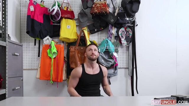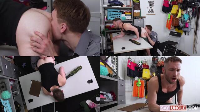 So they caught me peeping in the men's locker room, and now I deserve to deal with a security guard who is an even bigger pervert than I am? He wanted to send me to jail just for looking at a few nice dicks. Ridiculous. I was not going to ruin my life just because I was horny. Luckily for me, he was even more turned on than I was, so he offered me an option: he would let me go if I let him fuck me. Are you kidding me? I was fantasizing about a man licking my ass and pounding me, and now he was going to do all of those things to me on top of his desk. Sounds like a win-win situation to me. His cock was even bigger and fatter than the ones I was spying on, so bring it on. My mouth is ready to suck that monster dick dry.