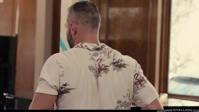 When Austin Avery wants to break away from a crowded birthday orgy, he grabs stripper Jake Nicola to go somewhere a little more private. Already out of his sexy cop costume, Jake shoves his face between Austin's cheeks as the partygoer begs him to fill his ass. More than happy to satisfy his boy, the bearded top slides every inch of his meat into Austin's wet hole. The bottom's bubble butt jiggles and his moans progressively get louder with each bareback thrust from the hairy top. Now fucking Austin on the coffee table, Jake digs his dick deep into the stranger's ass as he breeds and blasts cum all over his insides. Austin then finishes himself off before throwing his legs back to push out the fresh load that his new stripper friend left inside his hungry hole.