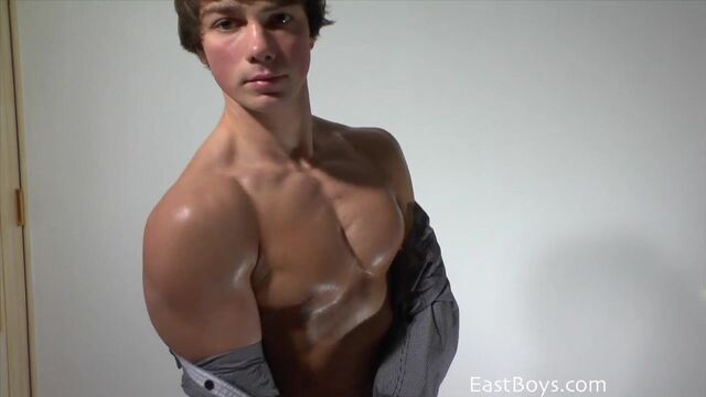Yet another flexing episode with John Tremont, for all your muscle lovers! John is one sexy, great looking 'boy-next-door'. He loves bodybuilding and goes to gym 5x/week. Look at his great body, his peaked biceps, massive arms and great pecs, which he is happy to show you, from every angle, flexed, unflexed, and also with oil. Enjoy!