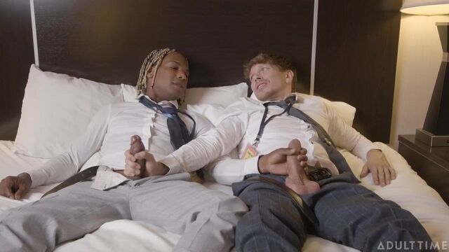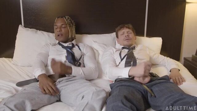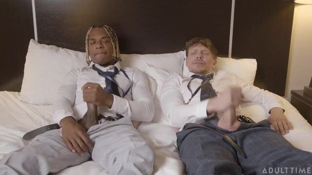 - Description: Work colleagues Austin and Ethan (Ethan Chase and Adrian Hart) have just finished attending a week-long crypto expo and are excited to get back home. But when their return flight gets delayed until the next day, they have to grab a room at a hotel to spend the night. To make matters even more inconvenient, they end up with the last room at the hotel, which only has one bed. As they try to settle in, they both comment on how anxious they are to get back to their girlfriends, especially since neither of them has had time to jerk off during the busy week at the expo. That's when they agree to watch some porn side-by-side and jerk off, so that they can rid themselves of their pent-up sexual tension. What they never expected, however, was just how turned on they'd get by the sight of each other's hard cocks... leading to them satisfying their urges with a more 'hands-on' approach...