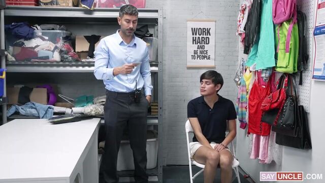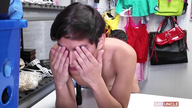 I've never stolen anything in my life before, but when I saw this underwear, I had to take it. I didn't think I would get caught. I tried to deny everything, but it didn't work. The security guard said that since I took those drawers, I had to deal with the consequences and let him see me wearing them. He was a perv! Wearing the underwear wasn't enough for him. He took it off right away and did a deep cavity search, fitting his entire hand inside my ass. He said that if I didn't want him to call the cops, I had to do way more for him. Luckily for him, after I felt his fingers inside me, my dick was rock hard, and I was craving his. Who knew you could fuck like that on a desk?