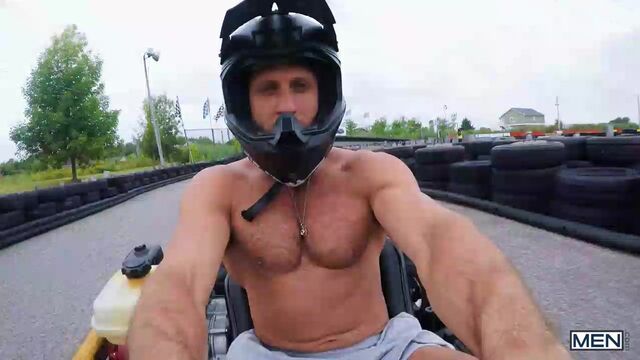 - Description: Drake Von and Dom King are ready to take each other on at the go-kart track. When they see hot employee Evan Peix bent over with his crack showing, they want to take him on, and Evan is happy to oblige. After Evan waves the checkered flag to end their race, the guys chase him down and hoist him up, carrying him right to the bedroom. Drake and Dom inform Evan he's bottoming today, so he eagerly gets to work sucking them before they take turns licking and fucking his hole. The guys spit-roast the eager bottom, and Evan's ready to take two cocks at once in a hot DP before both tops cum on his face!