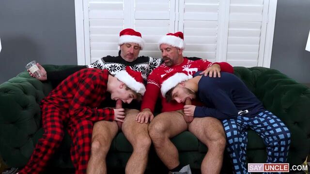 - Description: Christmas Eve is finally here, and buddies Oz and Matt have the perfect plan: sitting by the fire with their stepsons, Dex and Nicholas, and sharing funny stories from Christmases past. While planning the whole evening, they suddenly remember a fun game to play with their boys from their college years. It’s a straightforward “Guess the Drink Challenge” with a special ingredient: their own cum! The guys get down to business and start jerking off to get all set up for the game, but they are suddenly interrupted by Dex and Nicholas. Instead of calling it off, Oz and Matt tell their stepsons about their college tradition and enlist their help to prepare the cumnog. Soon, the preparations for the event turn into a wild fuck session, as the stepdads pass down their “holiday traditions” to the next generation of twinks, with a celebratory cumnog toast to end the night on a creamy note.