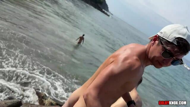 ColbyKnox closes 2025 with a return to the Puerto Vallarta beach. Kicking off with Noah White’s sweet peach getting licked by Colby Chambers. Noah gets on his hands and knees so Colby can finger the boy’s bussy. The water crashing on the beach blocks what Colby whispers to Noah. The waves can’t keep Colby from filling Noah up with cock. When his beautiful balls smack Noah’s rump, Colby slowly pounds. As his insides are pushed aside, Noah strokes his dick. All that drilling makes him bust a nut on the rocks; cum flies in every direction. “Oh, fuck,” Noah groans. He might be done but Colby isn’t. The fucking doesn’t stop or slow down. “Give it to me,” Noah pleads. Colby does. With passion and precision. “I’m going to come in you so fucking hard,” Colby exclaims. His cum decorates Noah’s guts. After the studs relax, Noah points to Mickey Knox (who is off screen). “I would like to take yours too,” Noah explains to Colby’s husband. Noah stands up and leans against a rock. Mickey gets behind and shoves his meat inside the wet hole. As he pushes his man’s load deeper into Noah, Mickey nibbles on the boy’s ear. There’s a brief break to make sure there’s no sand around Noah’s hole. :-) The camera gets a glimpse of other studs, on the beach, doing the deed. The lens gets back to Noah and Mickey. When he pulls out of the boy’s hole, Mickey’s tool is dripping wet. “So fucking hot,” Colby says off camera.