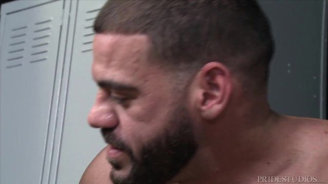 Scott Riley is sitting in the locker room and we can tell he is bummed out when Ricky Larkin walks in wearing only a towel. Beneath the towel, we can tell him is sporting a big hard cock and as he strikes up a conversation with Scott, the two talk about Scott not feeling great about his body and lack of big muscles. But, Scott cannot keep his eyes off Ricky's hard on under his towel. Soon Ricky drops the towel and Scott is on his knees sucking the big cock. He tries his best to deep throat it but struggles to get it all down his throat. Ricky then sucks Scott as he strokes his own big cock. He bends Scott over the rims his ass for a while before fucking him doggy style with his big cock. Scott then rides Ricky for a while before lying on his back and Ricky fucks him deeper until both cum.