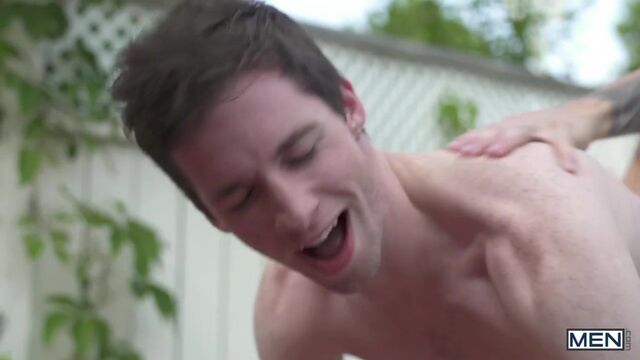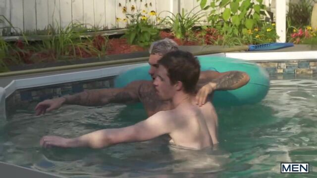 Slender, fit Thyle Knoxx is on his way over to his father’s place, and he’s looking forward to meeting the new pool boy that his dad hired. He immediately starts crushing on buff, tattooed William Seed upon seeing the bare-chested stud standing by the pool. Horny Thyle heads indoors to change into his swim trunks hoping dreamy William will want to take them right off, and slide his thick, uncut cock between his cheeks.