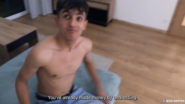 - Description: One of my previous encounters called me about money. He spent everything I gave him and wanted to make more. Well, there was only one way to make it work. I had to find another broke man and turn this into a threesome. It wasn't very difficult and soon I had two adorable dudes in my apartment. I undressed them and touched their beautiful bodies. I couldn't wait any longer. First, I let them suck my dick and lick each other's butts. That made us all horny. The more passive dude just loved his butt being licked and fingered. I'm pretty sure he would let me fuck him for free, but we made a deal. I coughed up all my money on the table and had some serious fun. We fucked the guy hard; I even tried some anal gymnastics with him. The poor dude was so exhausted.