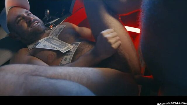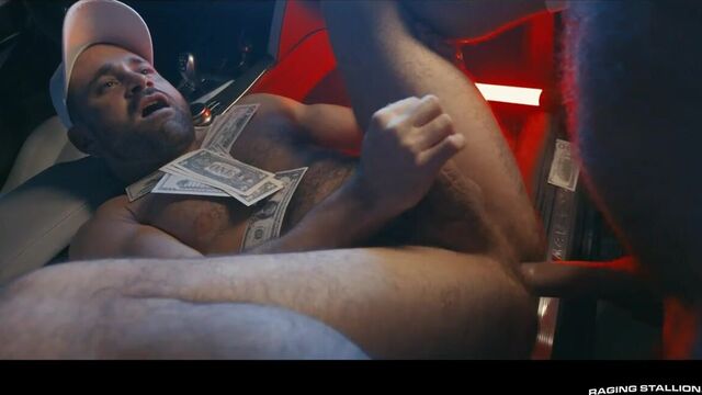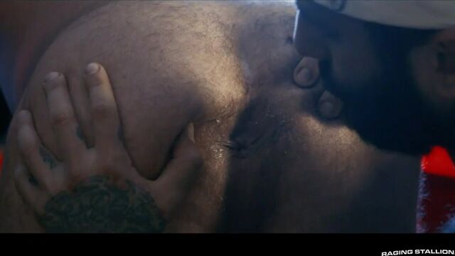 Beau Butler just won for betting on driver Markus Kage to win his big race and to show his appreciation, Beau is breaking out a bottle and getting on his knees right in the middle of his garage. He slurps up every inch of Markus' cock before the bearded top takes Beau, bends him over the seat of his car, and orally services his enormous, hairy cheeks. With his hole wet and ready to go full throttle, Markus slides his uncut cock into Beau bareback. A few more thrusts from Markus has both hunks crossing the finish line and coating Beau's bushy pubes in their hot ropes.