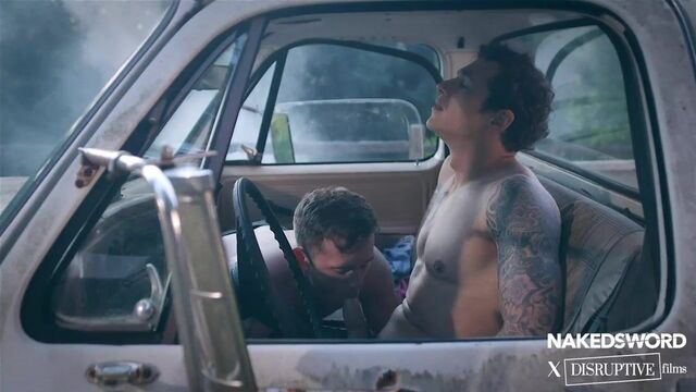 With a handful of fellow players already knocked out of the game, Andrew Delta and Jayden Marcos are still on the run from their depraved hunters. After Jayden discovers a terrified Andrew hiding inside an abandoned truck in the middle of the wilds, the two contenders embrace and share a tender kiss. Soon, Andrew is leaning across the passenger seat to wrap his beautiful lips around Jayden's big, thick dick. Knowing -- and seemingly not caring -- that he's breaking the rules of the game by resting with another player, Andrew heads to the bed of the pickup with his new lover and moans as Jayden buries his girthy, bareback cock deep inside him. It isn't until after they cum that both come face to face with a dangerously hard truth.