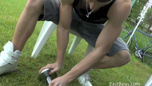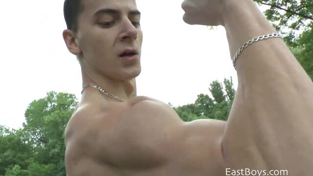 Ronnie is back, bigger and better! Ronnie seriously worked on his body as you can see! Eye candy for muscle flex lovers, enjoy Ronnie's massive yet ripped muscles, especially biceps and triceps, workout in rain and flexing for everyone around to see. More to come...maybe even nude!