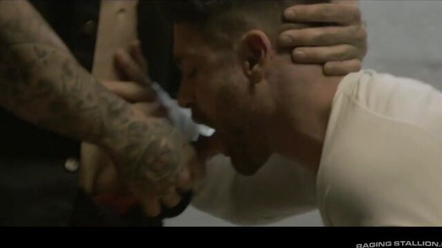 Officers Skyy Knox and Tony D'Angelo are trying to bust driver Beau Butler's crew for street racing, but the beefy stud knows better than to talk to the police. It isn't until the aggressive officers pull out their hard cocks that Beau finally opens his mouth. With the hairy racer bent over the interrogation room table, officer Tony warns Beau that if he doesn't start talking, they're going to bareback his hole. Beau refuses to speak, and, true to their word, the officers proceed to take turns drilling their suspect's furry bubble butt. The nonstop thrusting from the two brooding cops is too much for Beau and has the stud spitting out a thick load of cum onto Skyy's abs. The rough officers immediately return the favor by surrounding Beau and covering his face in their creamy seed.