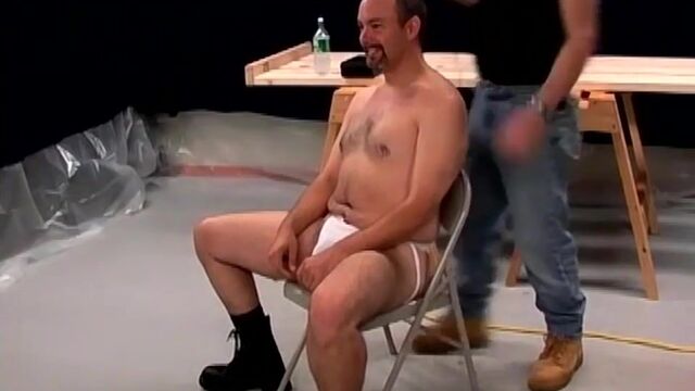 Pooch, David and Buzzcut like to keep their heads shaved and it looks as though two of them need to be shaved. They take turns shaving one another's heads before a third bear shows up for some ass rimming and cock sucking fun. Before that though, one is tied to a table and made to service his older buddy's rock hard dick with his talented mouth!