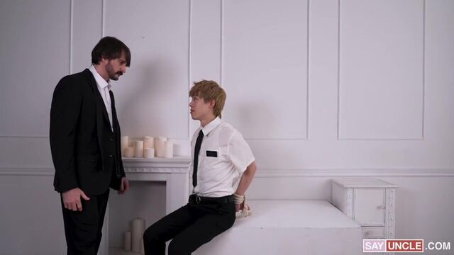 - Description: Trust is crucial to be a member of the brotherhood. Secrets are not allowed in here, and young Jakey O knows it. President Leblan suspects the boy is hiding something from him, so he summons Jakey for interrogation. After tying the elder’s hands, the President demands the truth about Jakey’s past. The elder comes clean about his past sinful deeds with a stranger, something he believes the brotherhood will not approve. To his surprise, President Leblan is not mad about his past concupiscent acts–he wants Jakey to pursue them only under the secrecy of the mission’s protocols. The church leader is about to teach the young elder that the pleasures of the flesh are confined to a safe space where Seb is in control, and Jakey must surrender his body to his lustful urges.