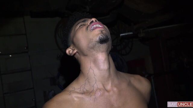 Galore is working alone in a garage when three loan sharks burst in to collect a debt. Desperate, Galore tries to hide, but the trio quickly catches him and demands their payment. Completely broke, Galore asks for more time, but they have no intention of forgiving him. However, there is one way to cancel his debt without cash: paying with ass! Galore suddenly becomes the guy’s pig bottom, getting his hole drilled and his body splattered in cum to leave the whole incident behind.