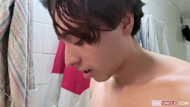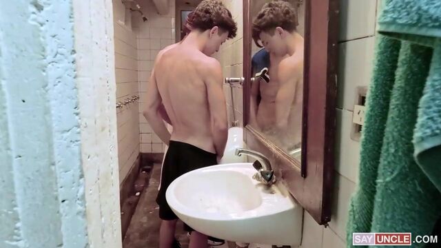 Exequiel and Leonel were a bit distracted during the soccer match. They are usually focused on the goal, but today, their eyes were fixed on each other’s shorts. Luck is on their side as they are left alone in the locker room after the game. With nobody around to judge them, they start joking around about measuring their dicks. Innocent rubs become hard strokes as the boys let their secret fantasies run wild. Exequiel has never seen a thicker cock than his mate’s, and Leonel had never imagined his best bud would suck his cock better than his girlfriend. With no time to lose and the excitement of not getting caught, Leonel gives Exequiel the ass-pounding of his life and paints his smooth chest white.