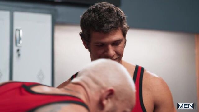 The college gymnastics team are practicing their formations, but as Mu gets on top of the three-man pyramid, River rips open his singlet and rubs his dick against his ass. In the next formation, Mu sucks River while their teammates are none the wiser, but things start to get wobbly as River licks Mu's hole in the third pose. The pyramid finally collapses when the teammates notice Mu and River have their dicks out, and the horny pair are already 69ing as they hit the mat! Mu and River demonstrate their physiques and athleticism as Mu rides the top and gets drilled hard on the mats until he shoots a big load, then River pulls out and cums on him.
