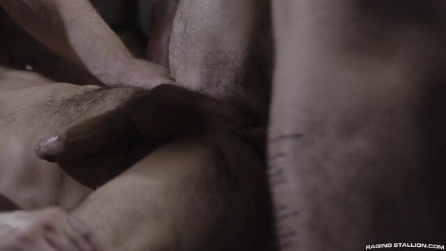 To punish Beau Butler for his misconduct at rap star Andre Donovan's estate, the warden instructs his henchmen to take it out on the one thing that Beau loves most, his boyfriend. The guards arrange for intimidating inmates Bennett Anthony, Chris Damned, Reign and Alpha Wolfe to gang-bang Drew Valentino until he's completely broken down. Bennett pushes Drew over a cafeteria table as Chris and Alpha hold the hairy prisoner in place. Ripping Drew's prison-issued boxers at the back, Bennett rams his ginger cock straight up Drew's bushy butthole before letting Chris have a turn. When Bennett notices that that the stoic Reign is tentative and hanging back, he pressures the tattooed hunk to get his enormous cock warmed in Drew's guts. With Drew on the ground, he is served not only the raw dicks that were just deep inside him but also Bennett's red-hot cum-chute. Once Drew is flipped onto his back, his legs are held wide apart by Alpha and Reign while Chris squats down to cover Drew with his sweaty asshole. Bennett next licks Drew's meat ring, warming it up for a second round of bareback hole-punching that leaves Drew covered in everyone's cum. Will Drew survive to protect his boyfriend from The Warden's wrath?